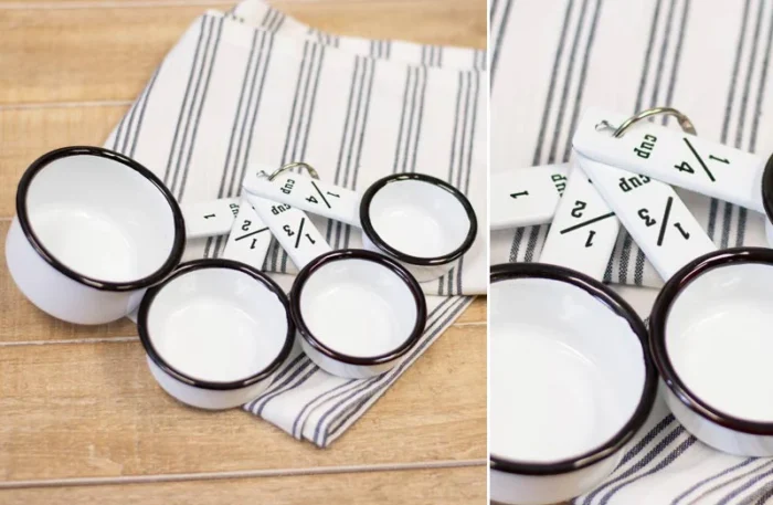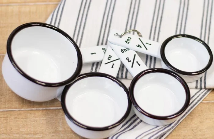 We are beyond excited to be able to bring you a kitchen necessity with a brand new twist! This set of enamel measuring cups is the PERFECT addition to your farmhouse kitchen and will be a GREAT help when baking all of your favorite goodies!Ā