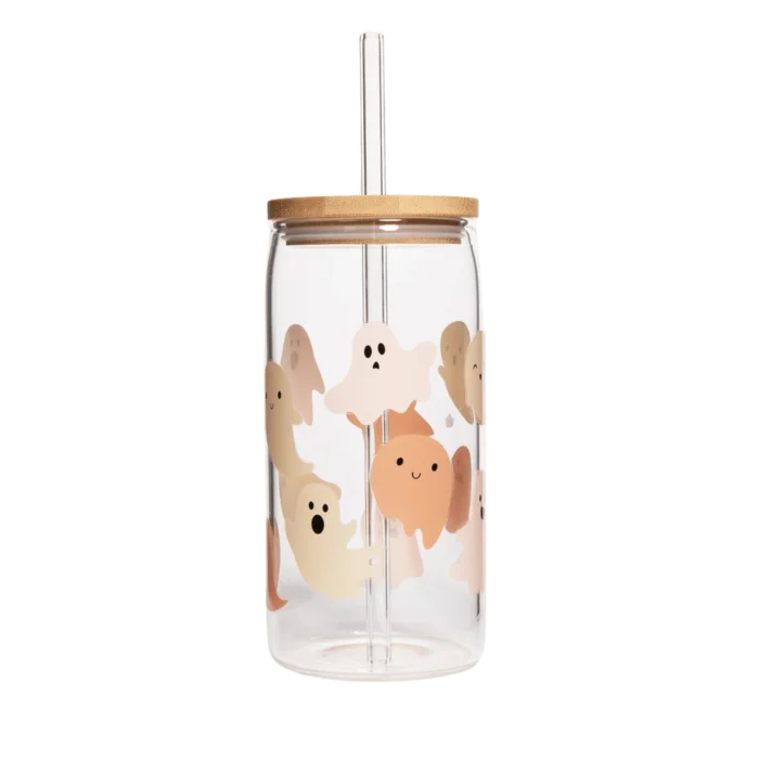 Picture a chilly Halloween evening, with the excitement of trick-or-treaters in the air and the warm glow of jack-o’-lanterns on your porch. Our Ghost Pattern Can Glass is the perfect way to add a touch of cute spookiness to your festivities. Whether you’re sipping on a refreshing iced coffee, a seasonal brew, or a festive cocktail, this glass brings a playful spirit to every drink. Featuring a wrap-around design of whimsical ghosts, it’s crafted with care to last through many Halloween seasons.