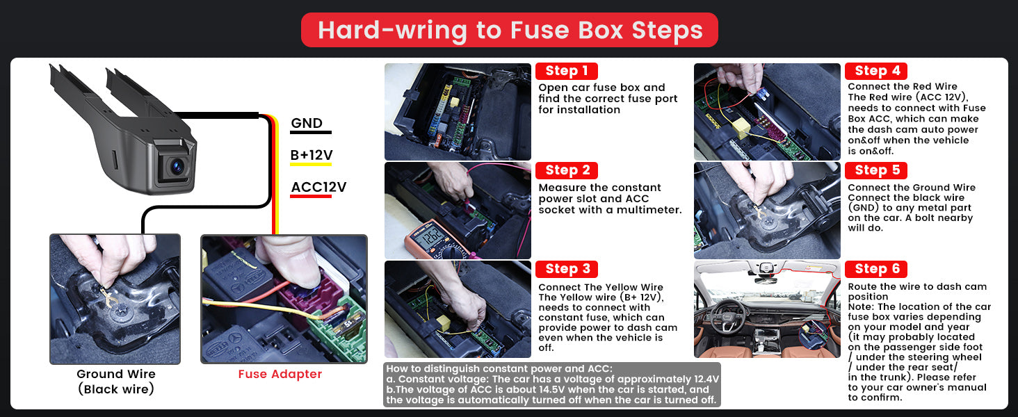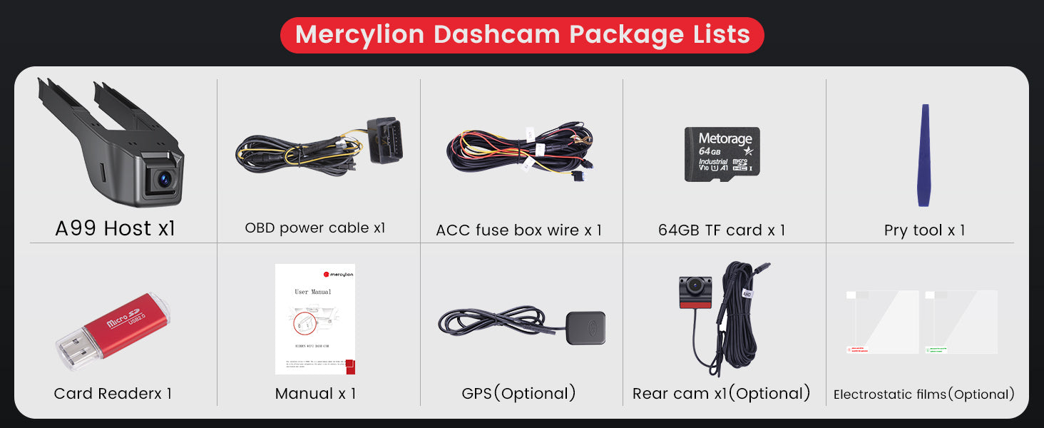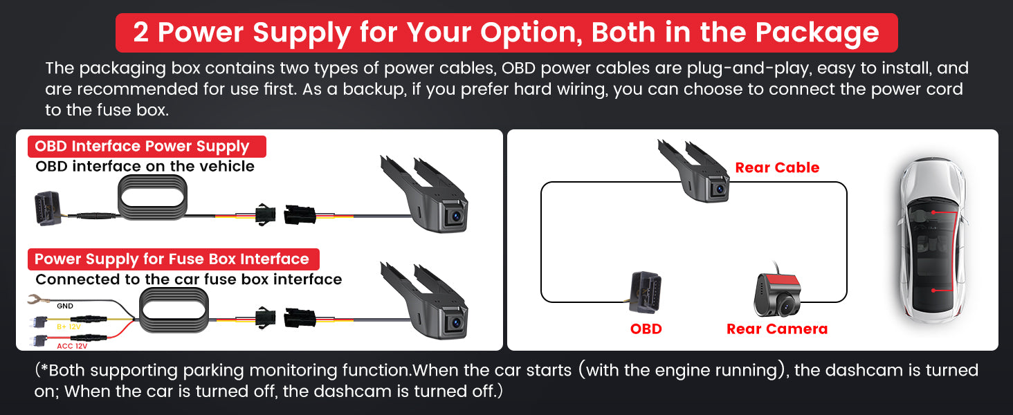 | Front Cam Installation | Plug-and-Play or Hard-wiring Both Support | Plug-and-Play or Hard-wiring Both Support | Hard-wiring from the front cam |