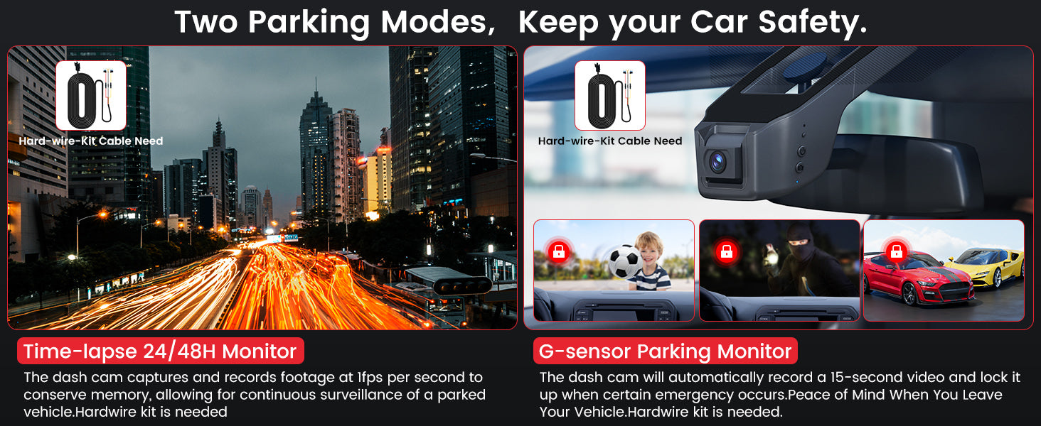 | Parking Monitoring | Start recording 20s after collision | Recording starts 15 seconds after collision | Start recording 20s after collision |