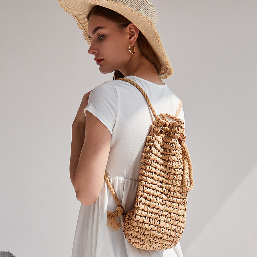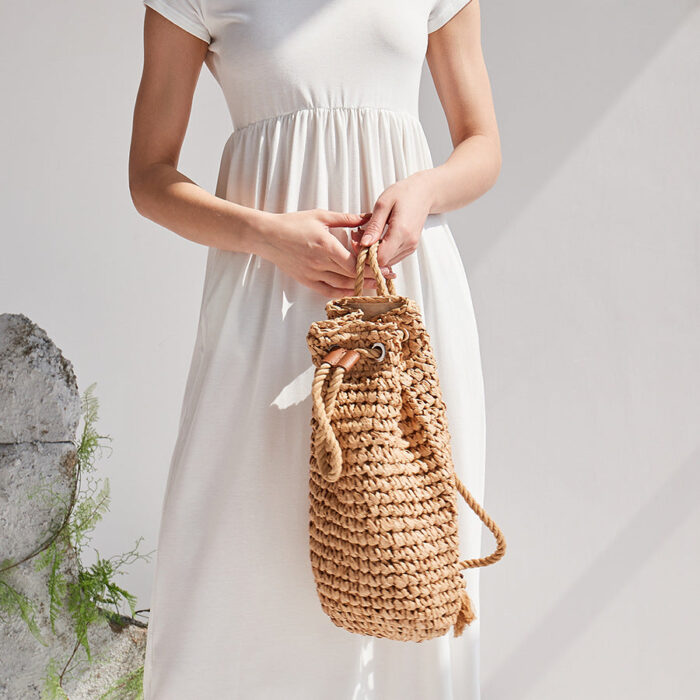 Discover the Straw Beach bag, a must-have for all beach lovers! Made of high quality straw, this bag exudes a trendy, bohemian style. Its unique bucket shape and drawstring opening add a touch of charm. The soft handle makes it easy to carry and the brown color adds to its natural and rustic appeal. Handwoven with care, this bag is both soft and sturdy.