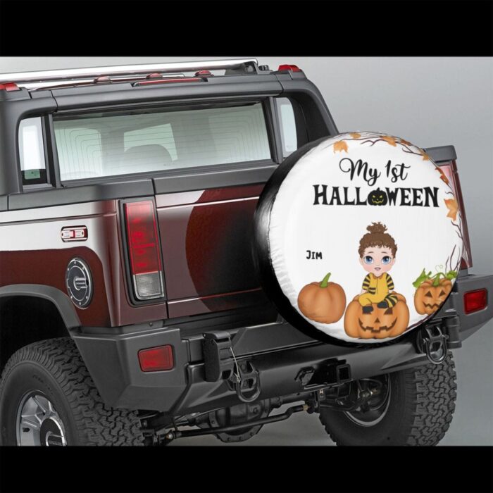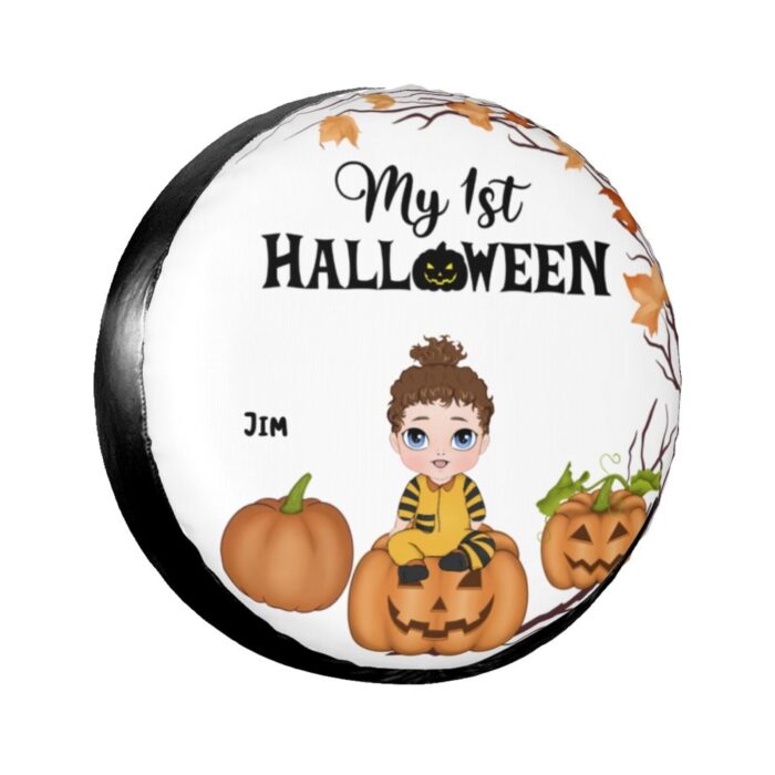 Celebrate your little oneās first Halloween in a unique way with our customizable Tire Cover. This fun and festive cover allows you to personalize your vehicle with a heartwarming message and a cute design thatās sure to stand out. Perfect for parents who want to add a touch of personality to their car while commemorating this special milestone!
